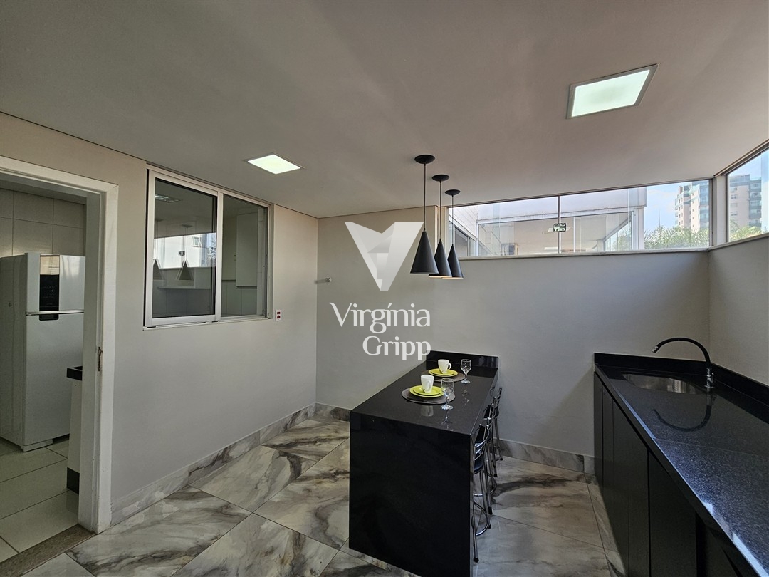 - Área gormet com armários planejados, bancadas em granito, churrasqueira e espaço para máquina de lavar e secar embutido (não incluso a máquina de lavar);