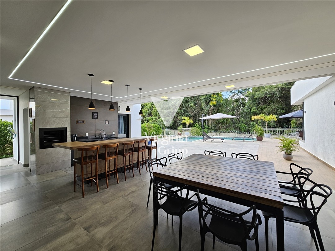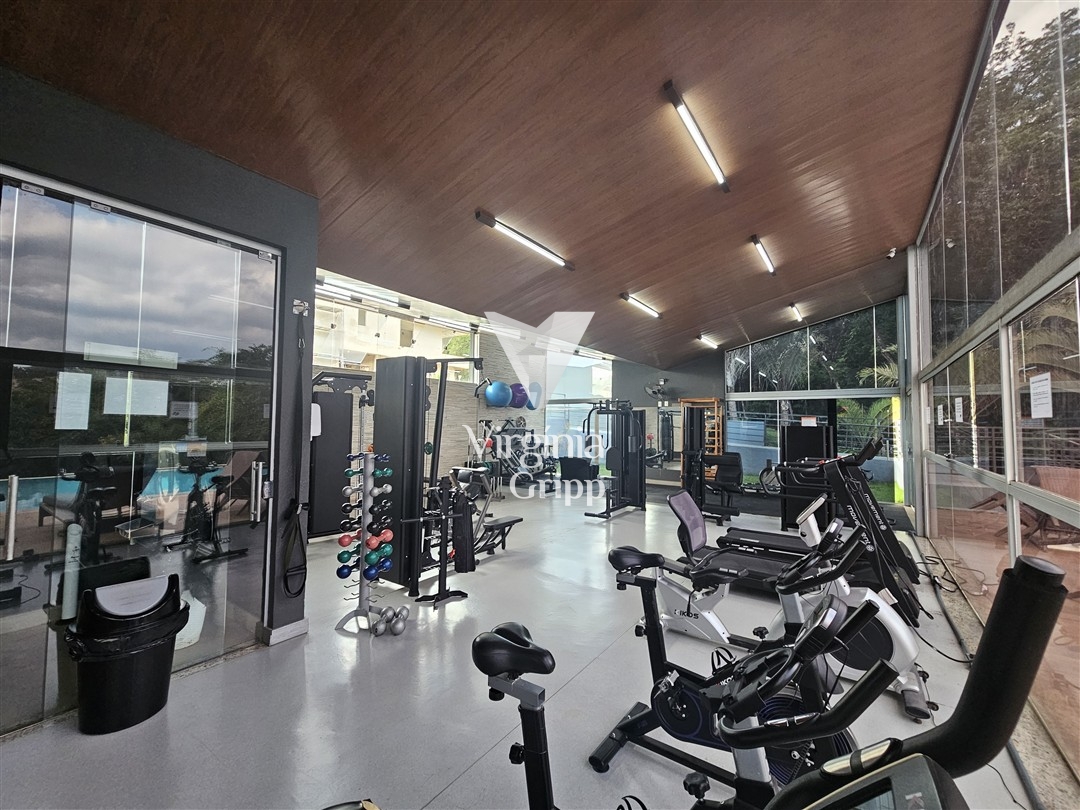 O condomínio oferece portaria 24 horas, minimercado, academia, sauna, quadras de esportes, piscina borda infinita, trilha para caminhadas.